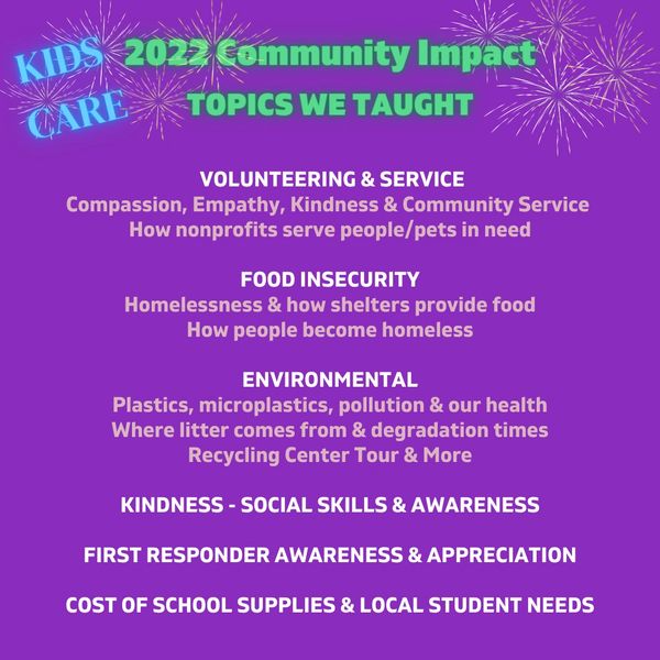 350 KIDS CARE VOLUNTEERS SERVED 895 HOURS IN 2024. AMAZING.